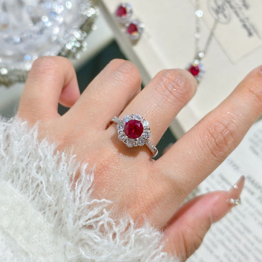 1 carat round synthetic Ruby halo cubic zirconia ring