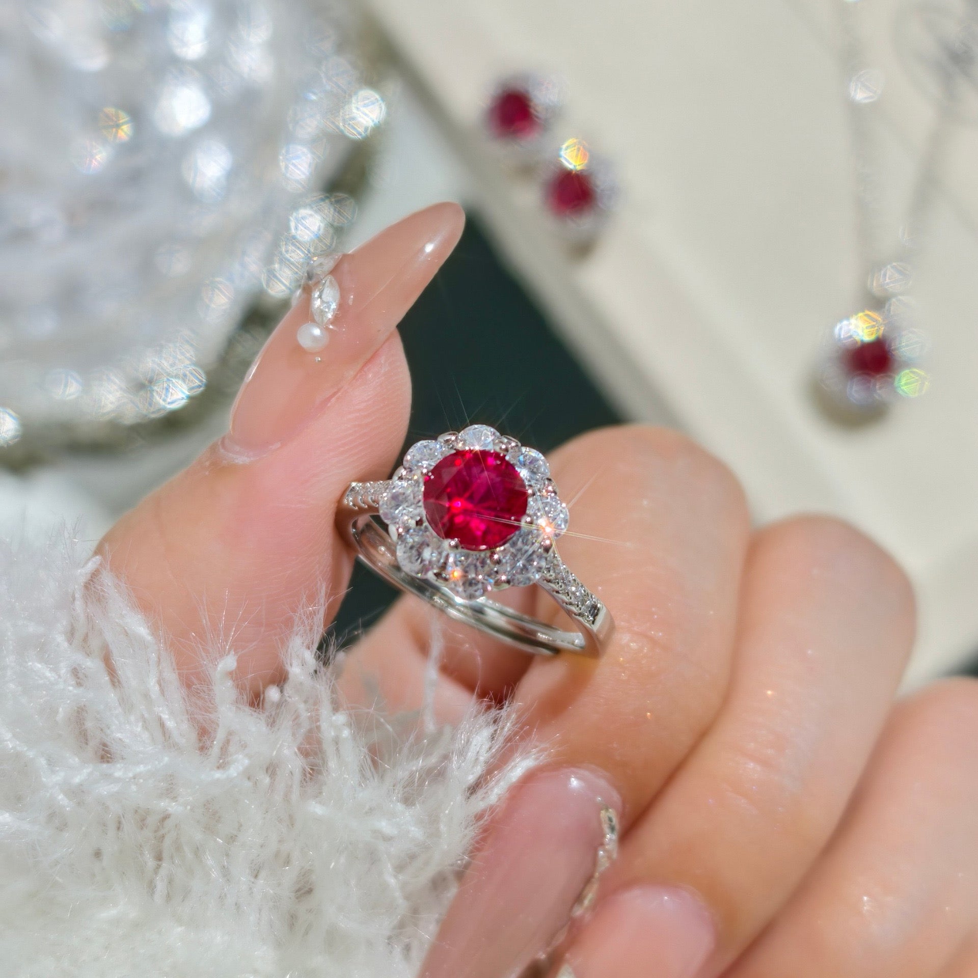 1 carat round synthetic Ruby halo cubic zirconia ring