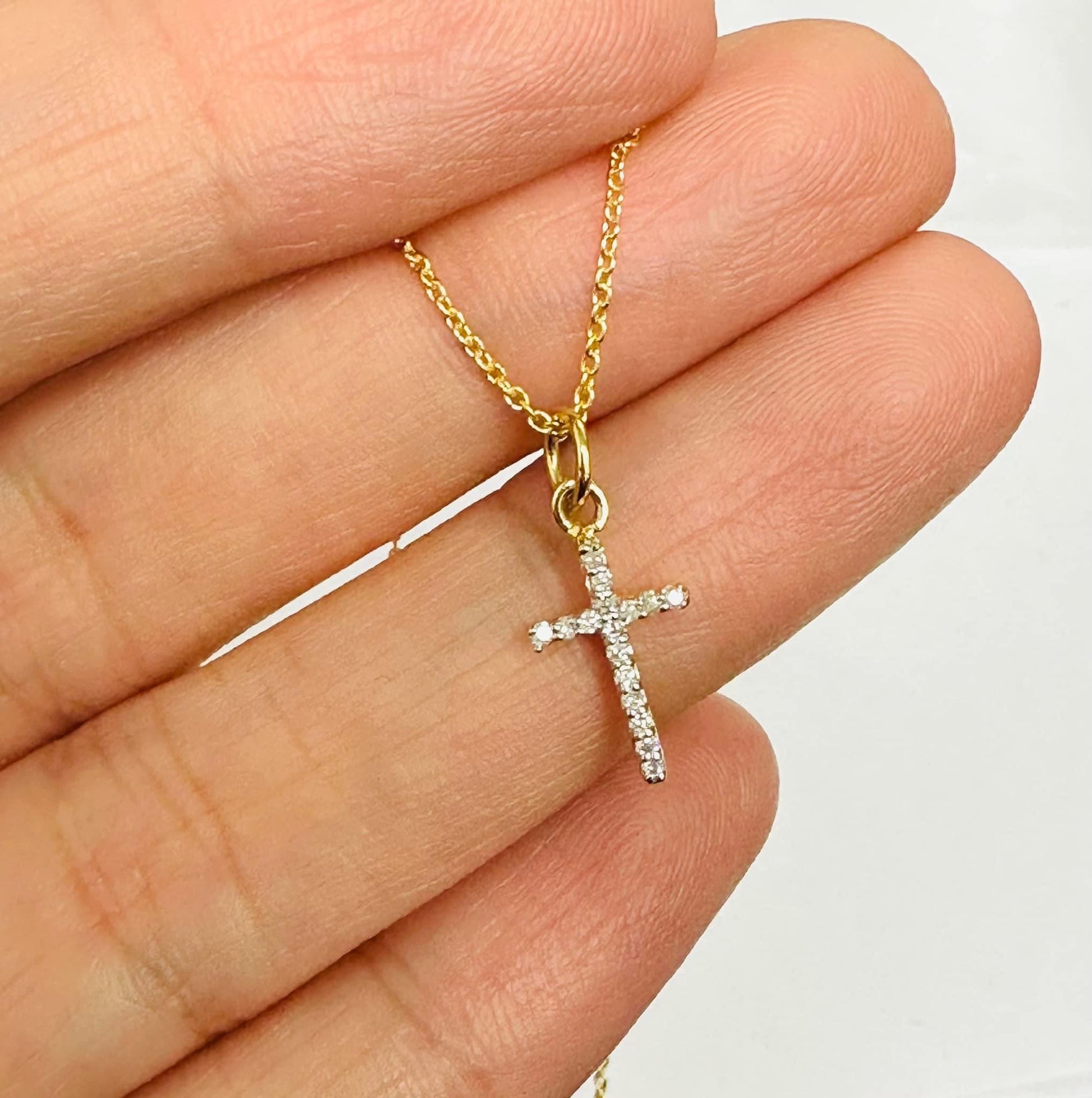 This beautiful diamond cross 0.10 carats and 16” 14 karat yellow gold chain . Plus extension at 17” and 18”