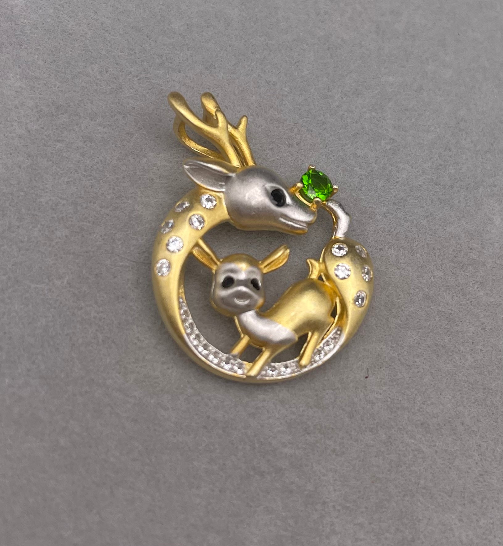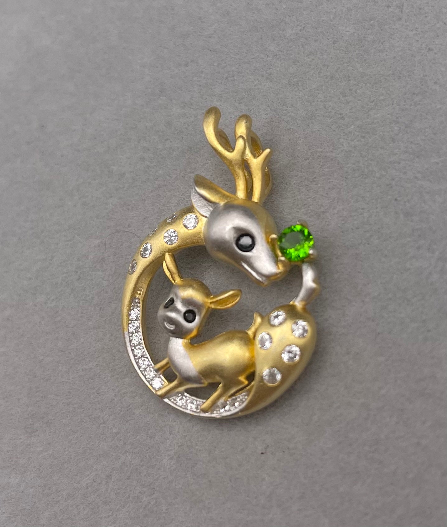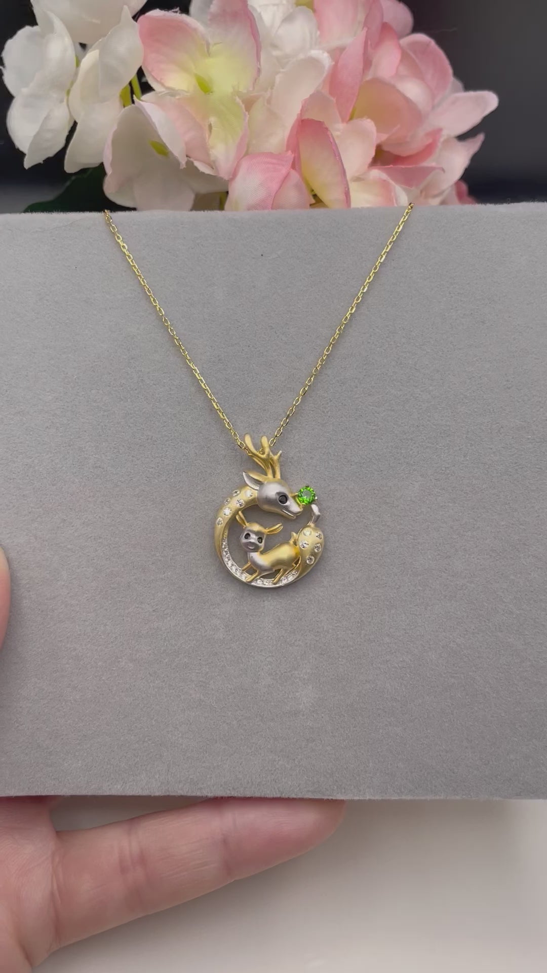 Garnet Deer & Bambi duo Pendant necklace, Cute Animal Gemstone Necklace