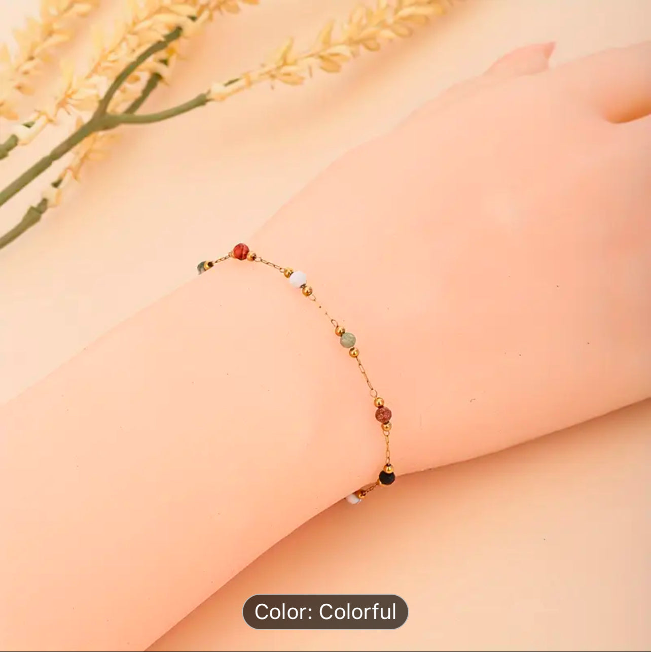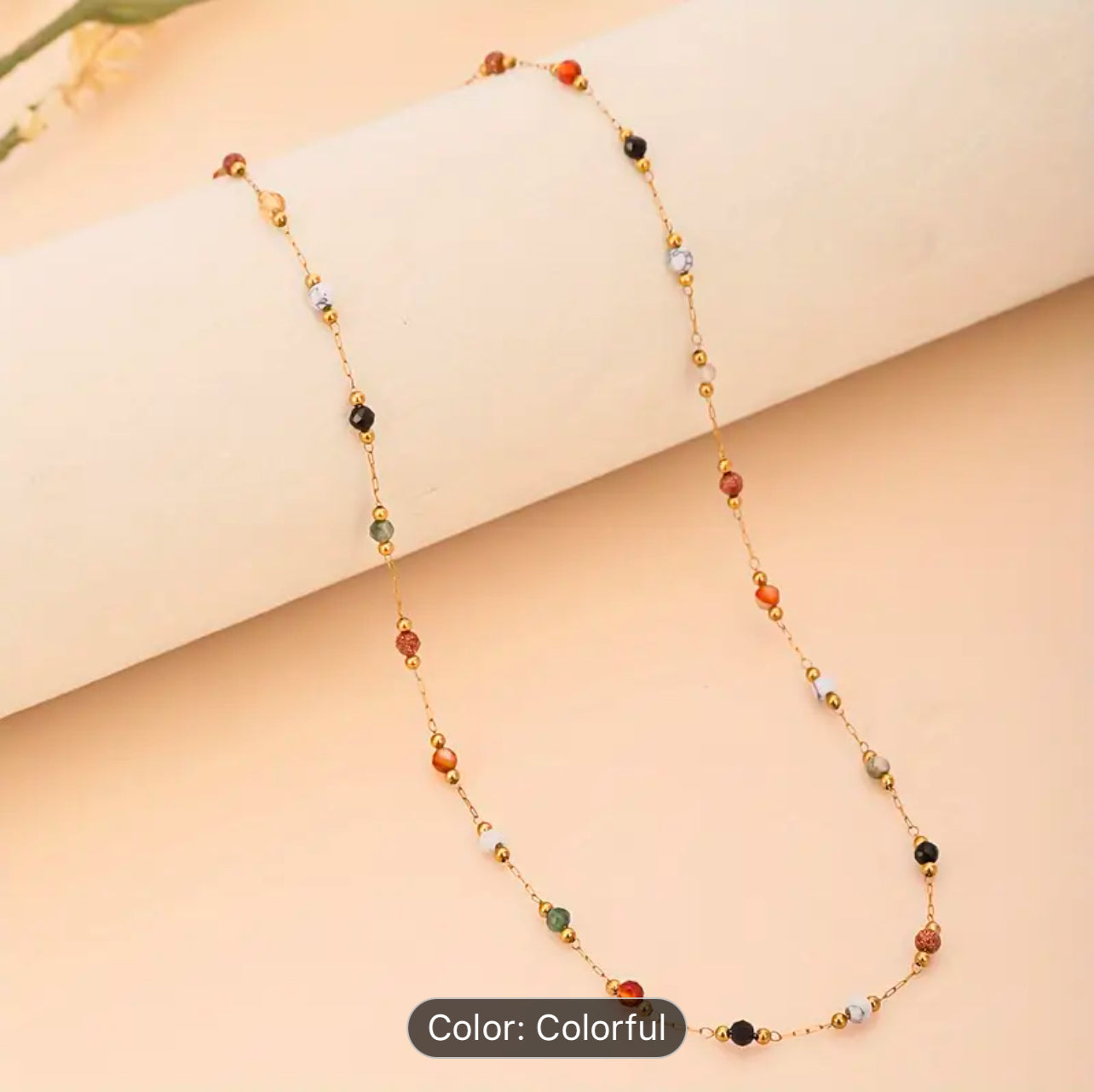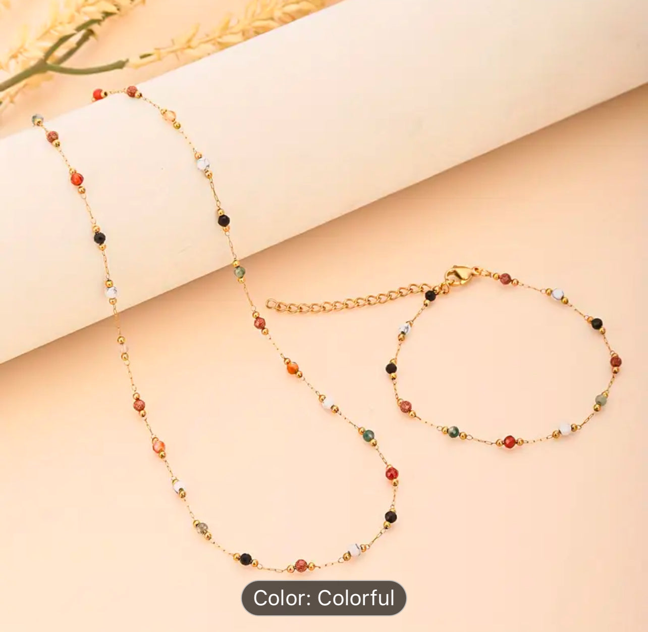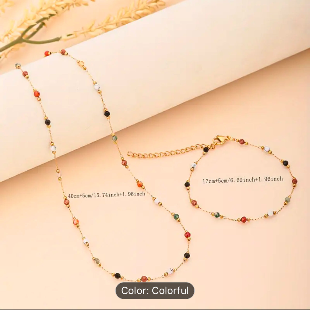 Stainless Steel Natural Stone Necklace and Bracelet Set, Women's Daily Wear, Hand Chain Set, Glamorous Gorgeous Style, 17-18”, bracelet 6-9”