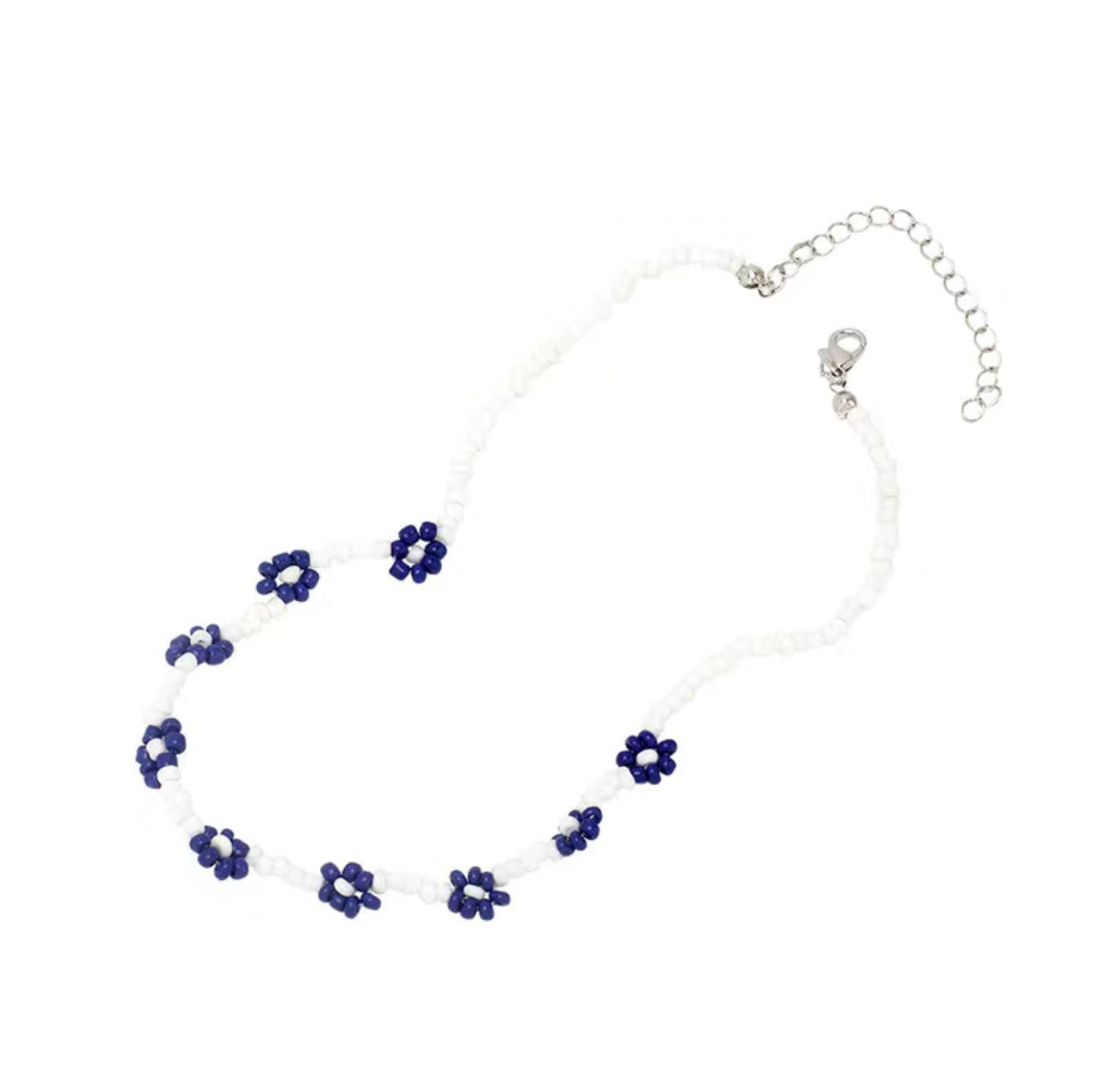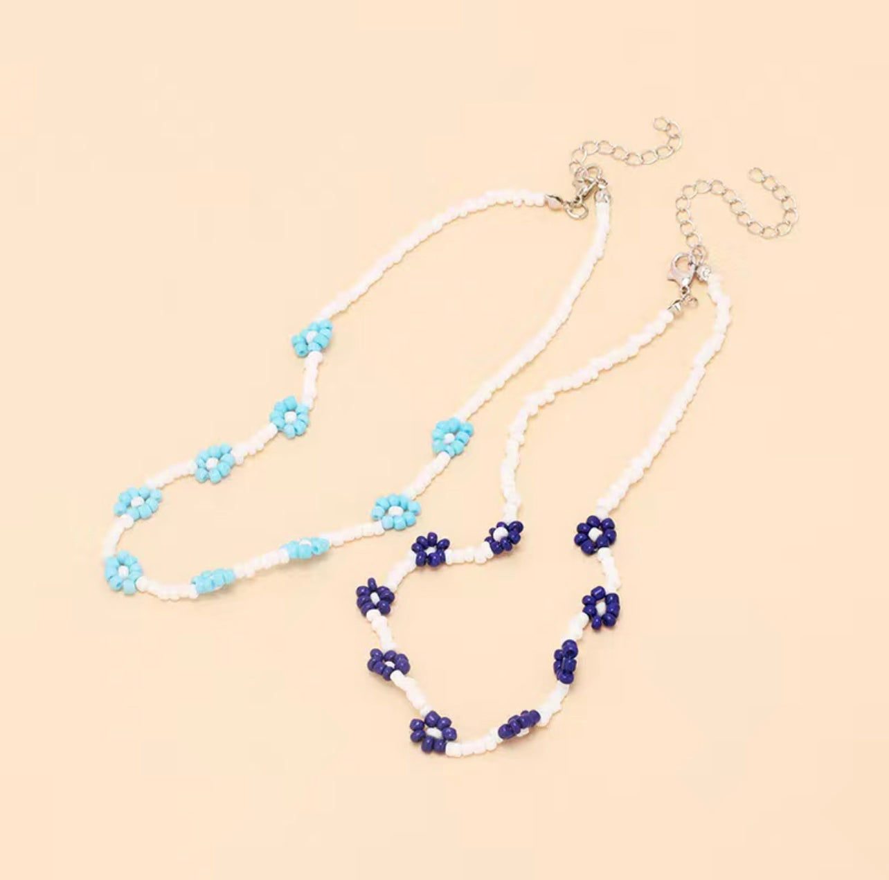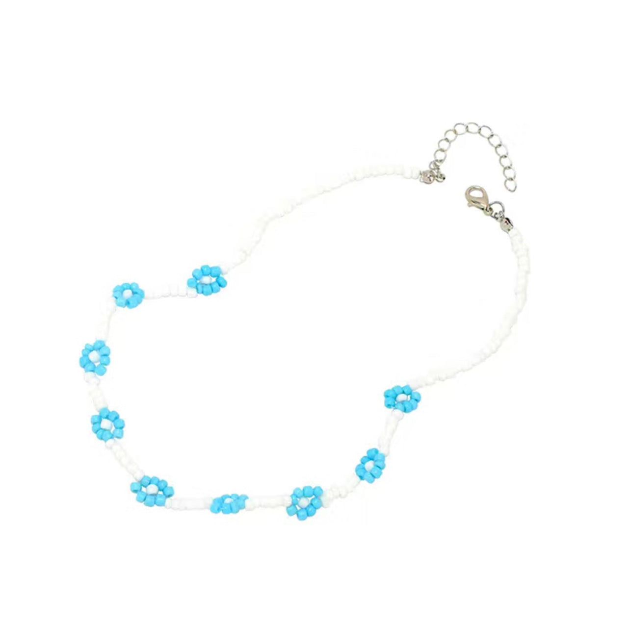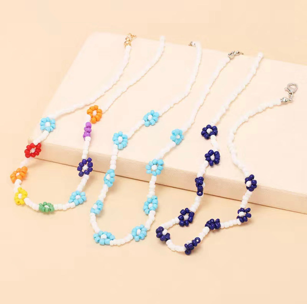 16-21” adjustable daisy seed bead necklace hand beaded. In multi color or rainbow color