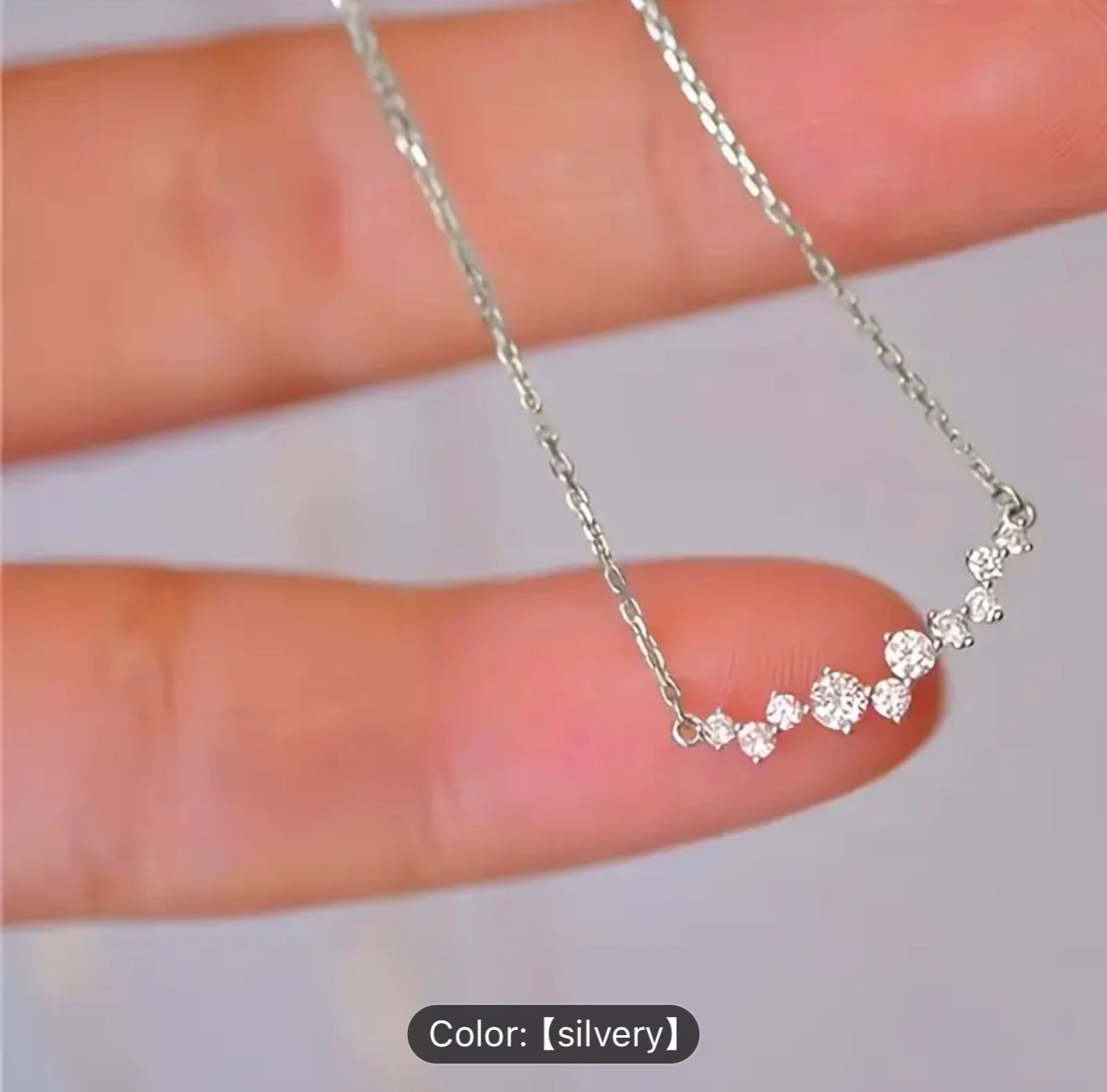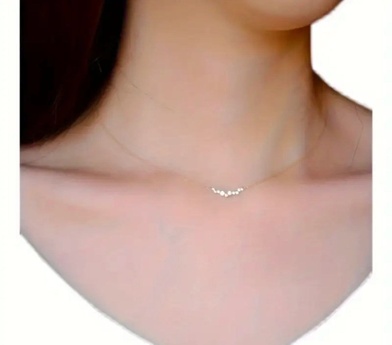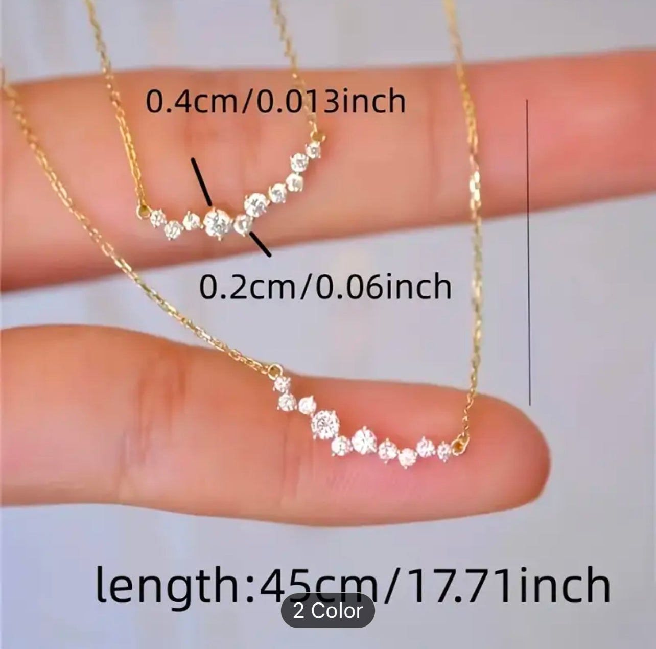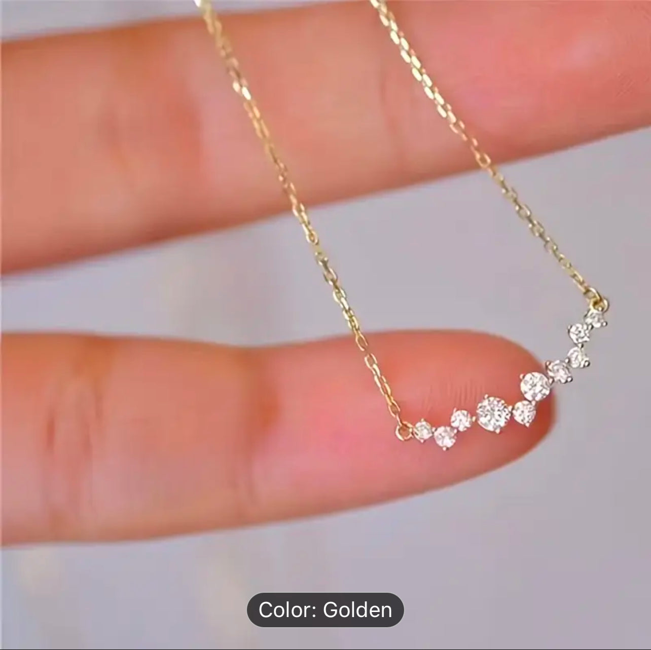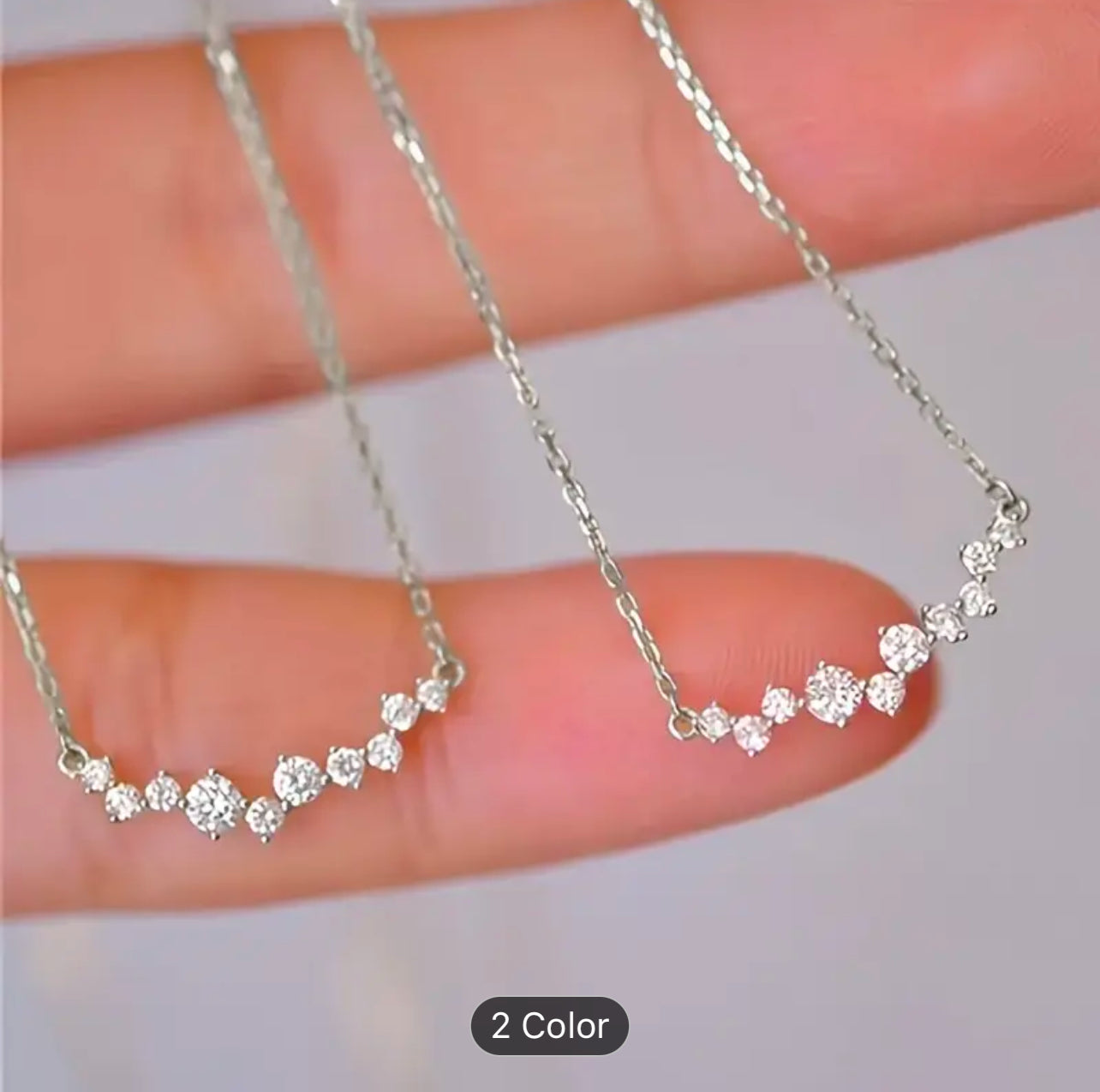 A Stylish cubic zirconia Necklace For Women With A Simple Design, Featuring some Zirconia floats on the neckline , Perfect For Brides, Engagement, And Wedding Ceremonies, To Adorn The Neckline.