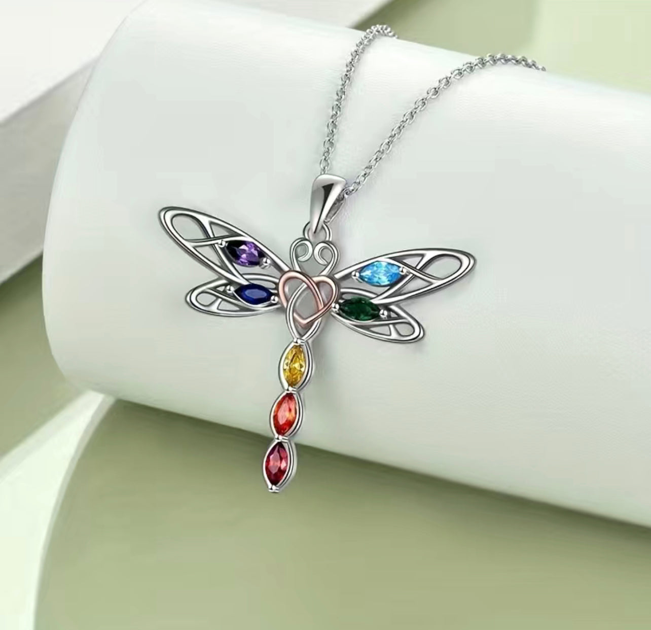 This beautiful cubic zirconia dragonfly pendant necklace comes with 18” chain
